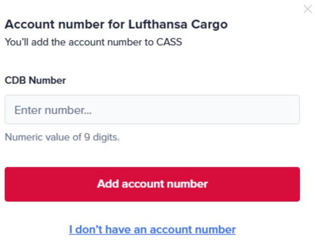 When the airline confirms your account creation is completed, they will provide you with an account number, the CDB code. This is always a 9-digit numeric sequence.