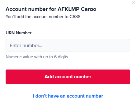 When the airline confirms your account creation is completed, they will provide you with an account number, called URN code. This is always a 6-digit numeric sequence.