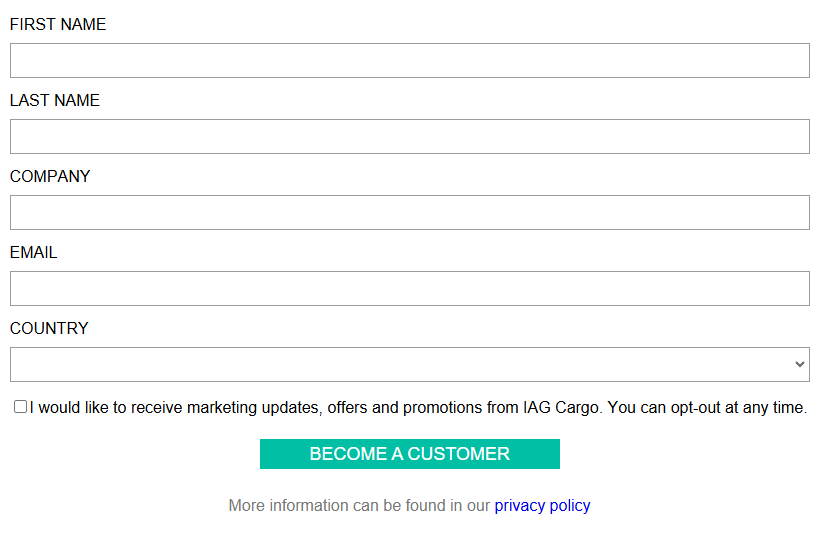 Once the airline confirms that your account creation is complete, please let us know at support@cargo.one.