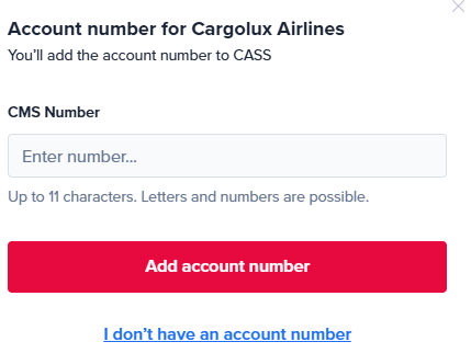 When the airline confirms your account creation is completed, they will provide you with an account number, your CMS. This is always a 7-digit numeric sequence starting with 4 (sometimes EUR is added at the end).